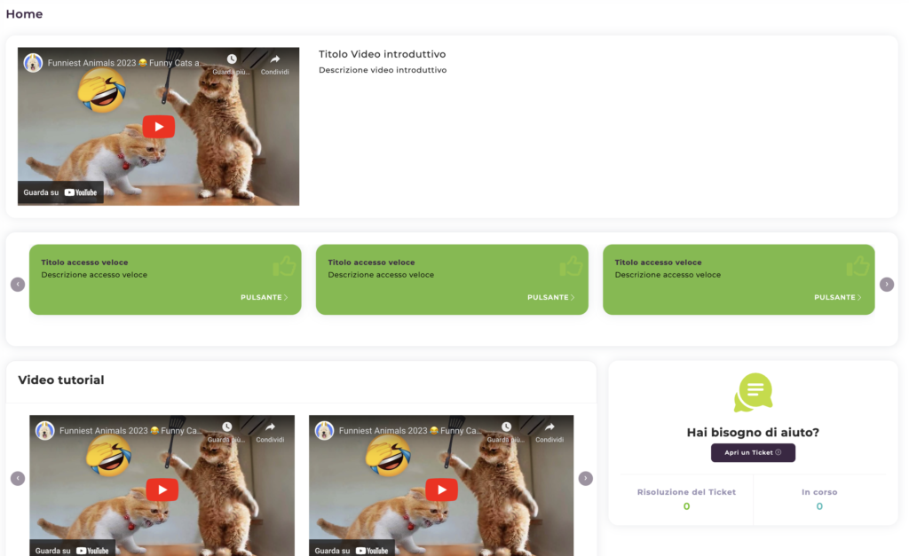 Se inclusa nel piano, la Home è una sezione molto utile in cui puoi inserire video da mostrare ai tuoi clienti.