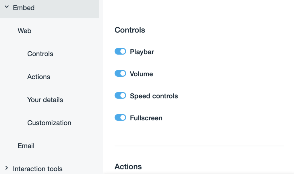 Nella sezione Embed del menú laterale, invece, seleziona i seguenti parametri: