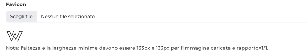 • Favicon: l’altezza e la larghezza minime richieste sono 133px e 133px, con un rapporto=1/1.