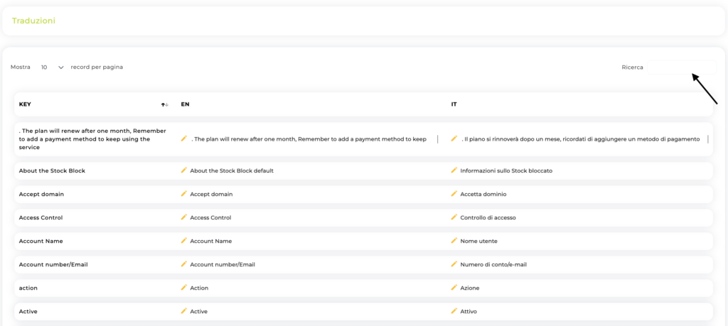Tramite il campo “Ricerca”, puoi individuare i termini che vuoi variare e modificarli.